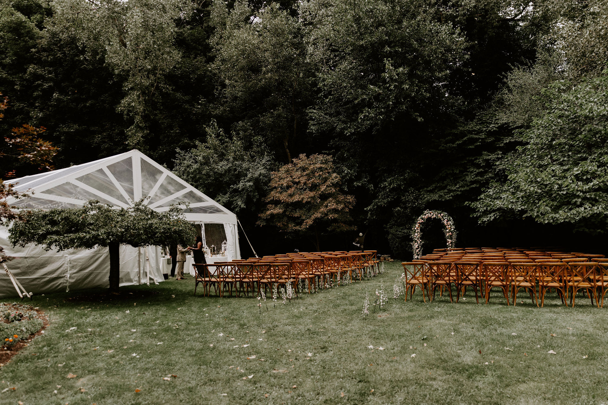 Some of our favorite celebrations haven’t taken place inside four walls at all. They’ve unfolded in gardens, fields, lakeside properties, and family backyards that were transformed, intentionally and thoughtfully, into full wedding environments.