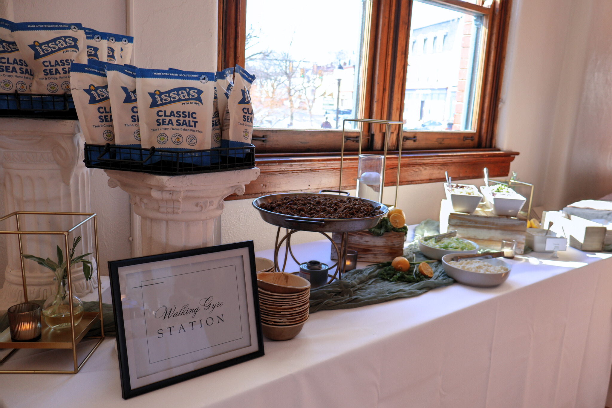 And while we’ve been delivering interactive dining for years, we’ve only kept raising the bar. Guests don’t just eat at our events—they engage with them. Our Walking Gyro Station takes the nostalgic walking taco for a Mediterranean spin. Guests grab a crisp pita bag, choose their protein, and load it up with toppings for a handheld bite that travels with the conversation. Then there’s our Roaming Cannoli Station—freshly filled cannoli brought right to the dance floor during dessert hour. Sweet, memorable, and impossible to turn down.